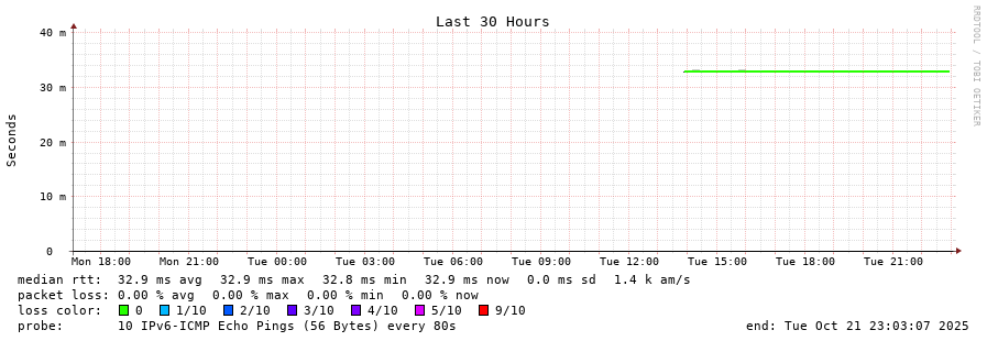 traceroute to 2001:b68:d::28 (2001:b68:d::28), 30 hops max, 80 byte packets - Generated at 2025-10-21 23:00:01